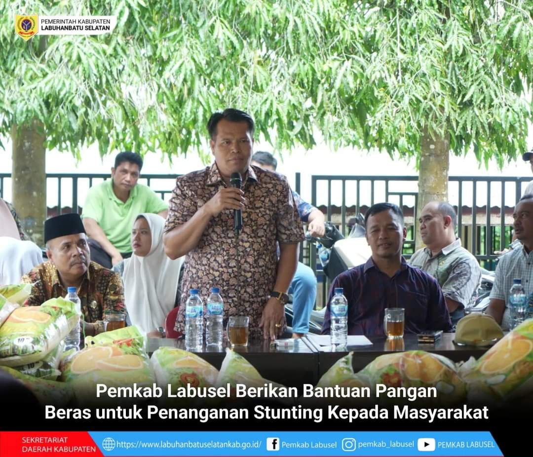“Pemberian bantuan pangan beras ini merupakan bentuk kepedulian Pemerintah Kabupaten Labuhanbatu Selatan dalam menurunkan dan mencegah stunting di Kabupaten yang kita cintai ini. Bantuan ini diharapkan mampu memenuhi kebutuhan gizi, sehingga dapat menekan angka stunting sebagai salah satu tugas besar untuk menyelamatkan generasi yang ada di Labuhanbatu Selatan”,kata Wabup.