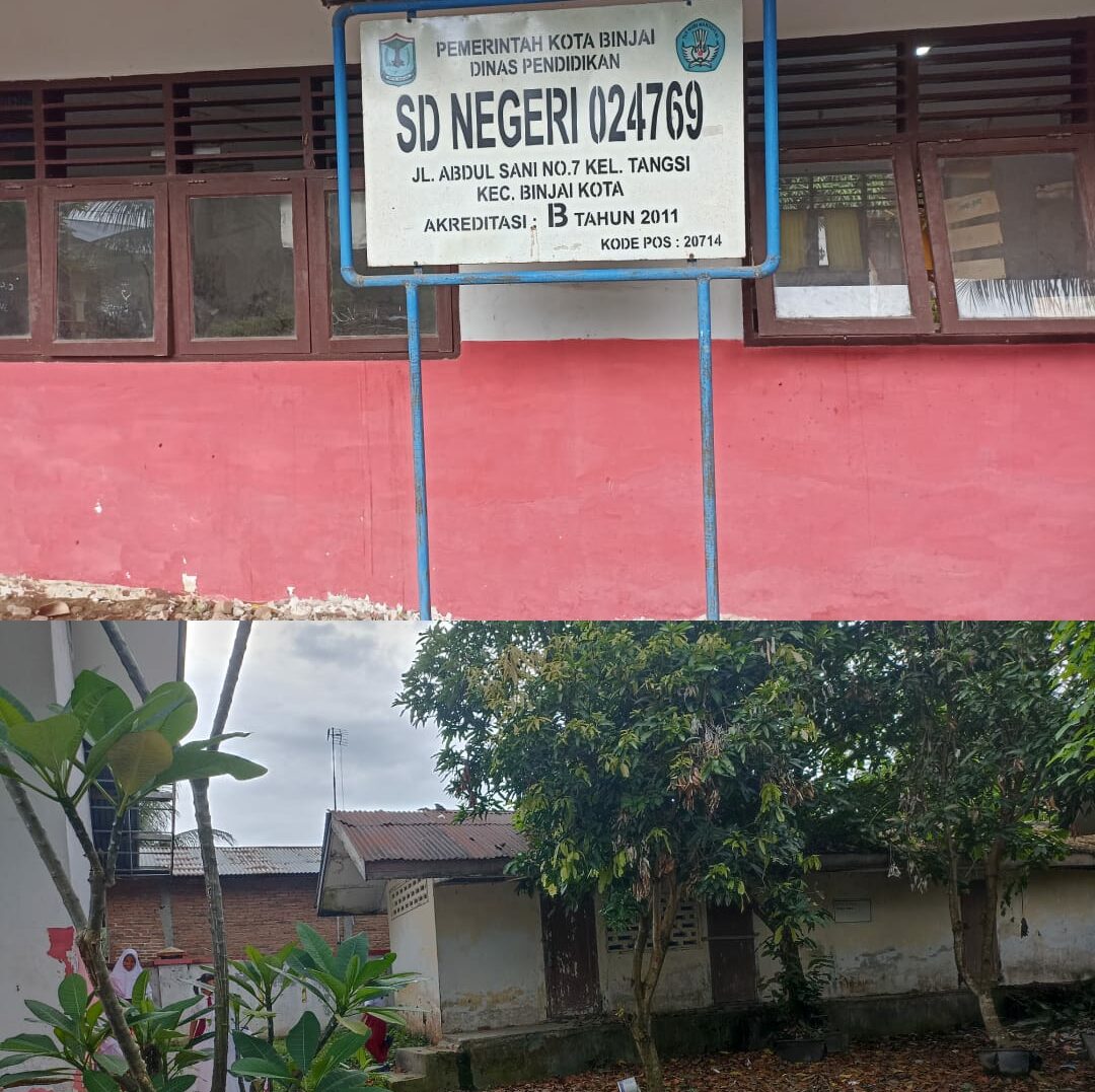 TNews, BINJAI – Sejumlah prasarana Sekolah Dasar (SD) 023891 di Jalan Kartika Eka Paksi, Kelurahan Satria, Kecamatan Binjai Kota tampak terawat, dan dinilai sudah tak layak.