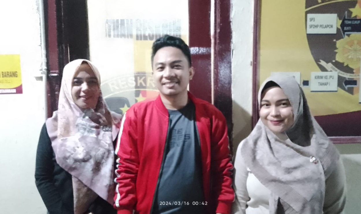 Pantuan awak media ini Vita Paputungan, datang bersama 3 pengacaranya di Polres Kotamobagu, Jumat 15 Maret 2024, sekira pukul 22.06 Wita.