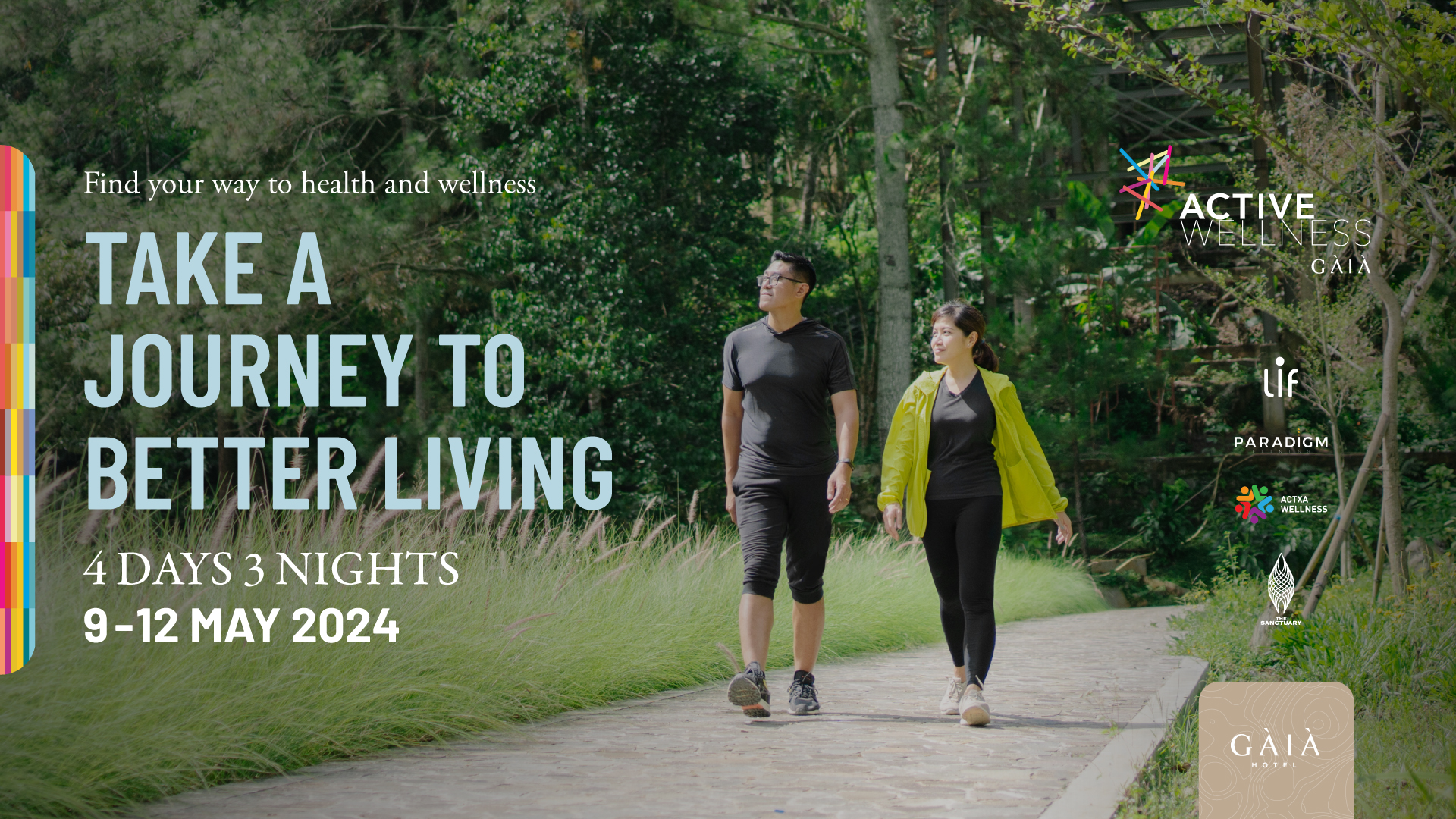 Active Wellness Retreat merupakan paket menginap selama 4 hari 3 malam di hotel The Gaia Bandung, yang disertai dengan rangkaian aktivitas wellness yang menarik bagi para peserta. Peserta akan memperoleh pengalaman premium dan unik dalam menjalani aktivitas wellness di lingkungan alam yang indah, hijau, dan sejuk yang berlokasi di daerah Setiabudi, Bandung, Jawa Barat. Acara ini akan berlangsung pada tanggal 9-12 Mei 2024.