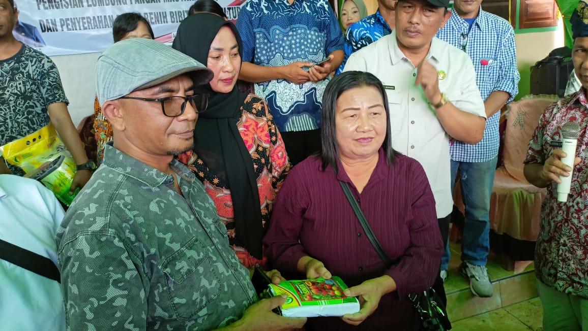 Kunjungan tersebut dalam rangka penyerahan bantuan pengisian lumbung pangan masyarakat, berupa beras dan paket benih bibit hortikultura.