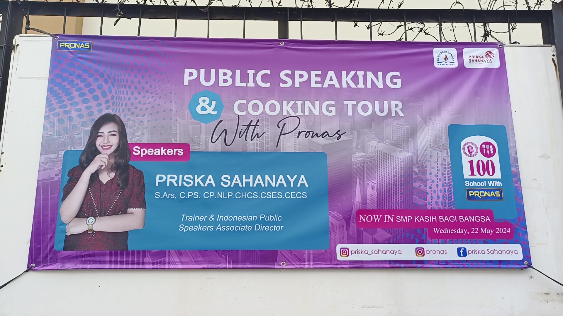 Dalam rangka menyebarluaskan manfaat public speaking, Coach Priska Sahanaya sedang menggerakkan program Public Speaking untuk 1,000 Sekolah. Sambutan yang luar biasa dari sekolah-sekolah yang telah disinggahi menunjukkan betapa penting dan bermanfaatnya kegiatan ini bagi generasi muda.