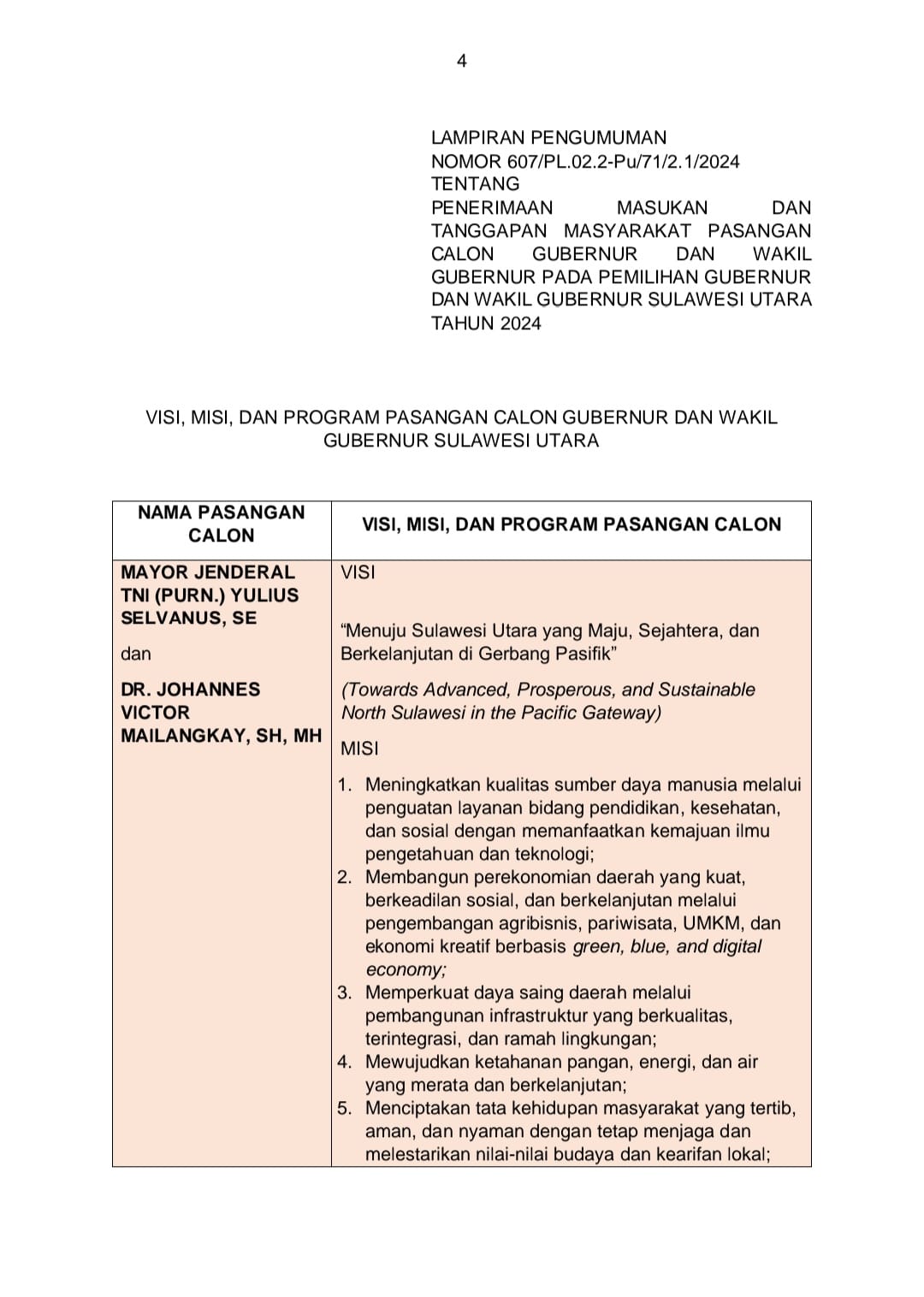 KPU Sulut Terima Masukan dan Tanggapan Masyarakat Terkait Paslon Gubernur dan Wakil Gubernur 2024