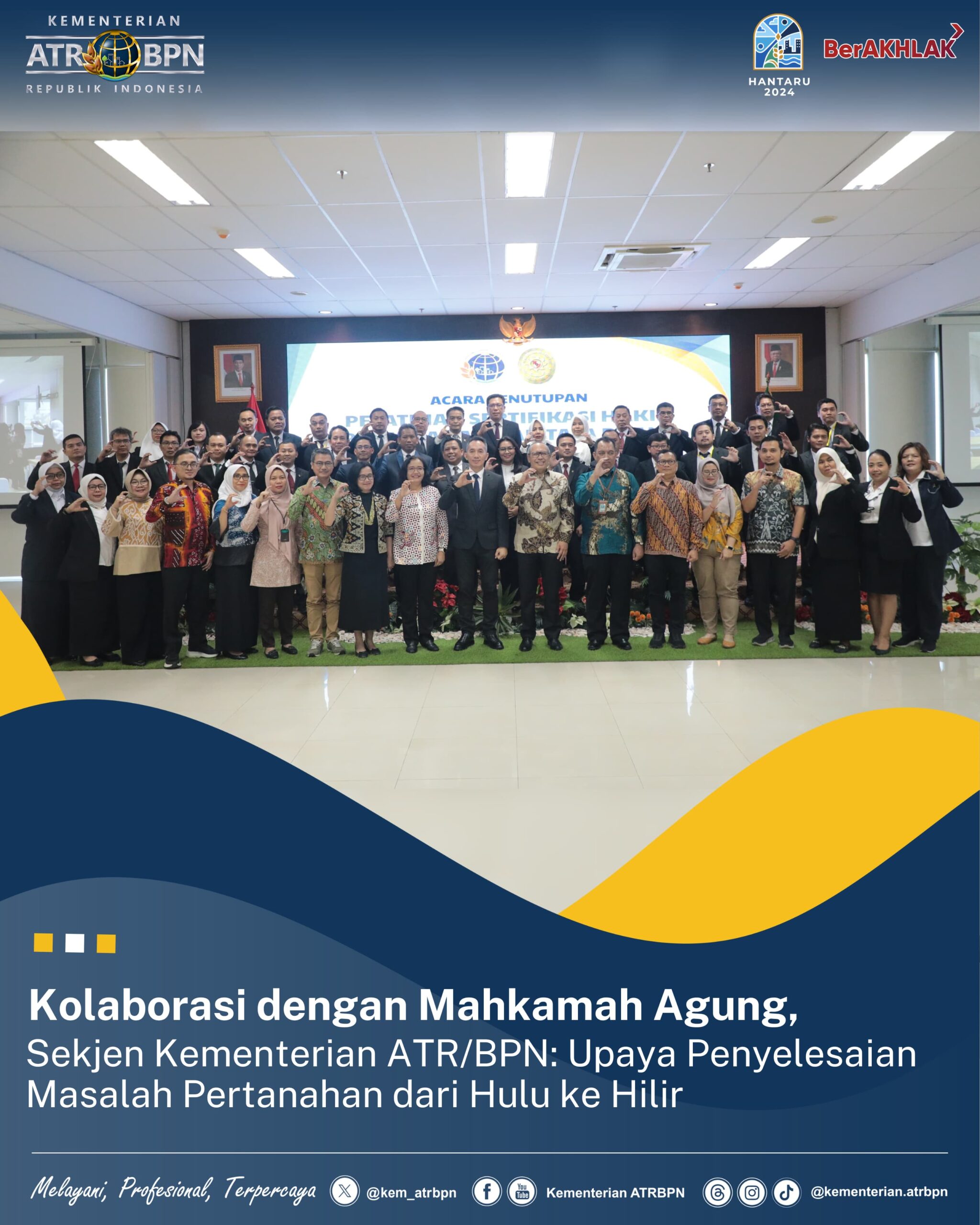 “Ini menjadi langkah awal supaya konflik-konflik pertanahan itu semakin diminimalisir, juga tata ruang dan bagaimana pengendaliannya kita selesaikan, kemudian, soal mafia tanah dan juga transformasi digital. Dari sisi hulu, ditugaskan Kementerian ATR/BPN menyelesaikan beberapa hal, di sisi hilir kita bekerja sama dengan Mahkamah Agung,” terang Suyus Windayana usai menutup pelatihan yang berlangsung di Aula PPSDM Kementerian ATR/BPN, Kabupaten Bogor.