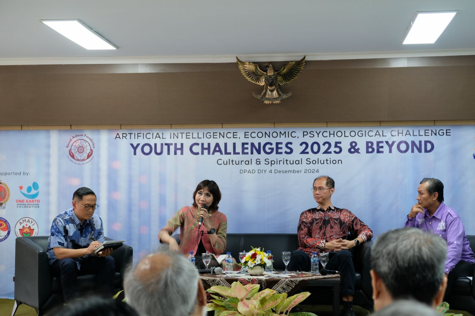 TNews, YOGYAKARTA – Yayasan Anand Ashram bersama Kadin DIY dan Dinas Perpustakaan dan Arsip Daerah menggelar seminar bertajuk “Youth Challenges 2025 & Beyond: Cultural & Spiritual Solution” yang bertempat di Dinas Perpustakaan dan Arsip Daerah, Jl. Raya Janti, Wonocatur, Banguntapan, Bantul, Daerah Istimewa Yogyakarta, Rabu (4/12/2024).