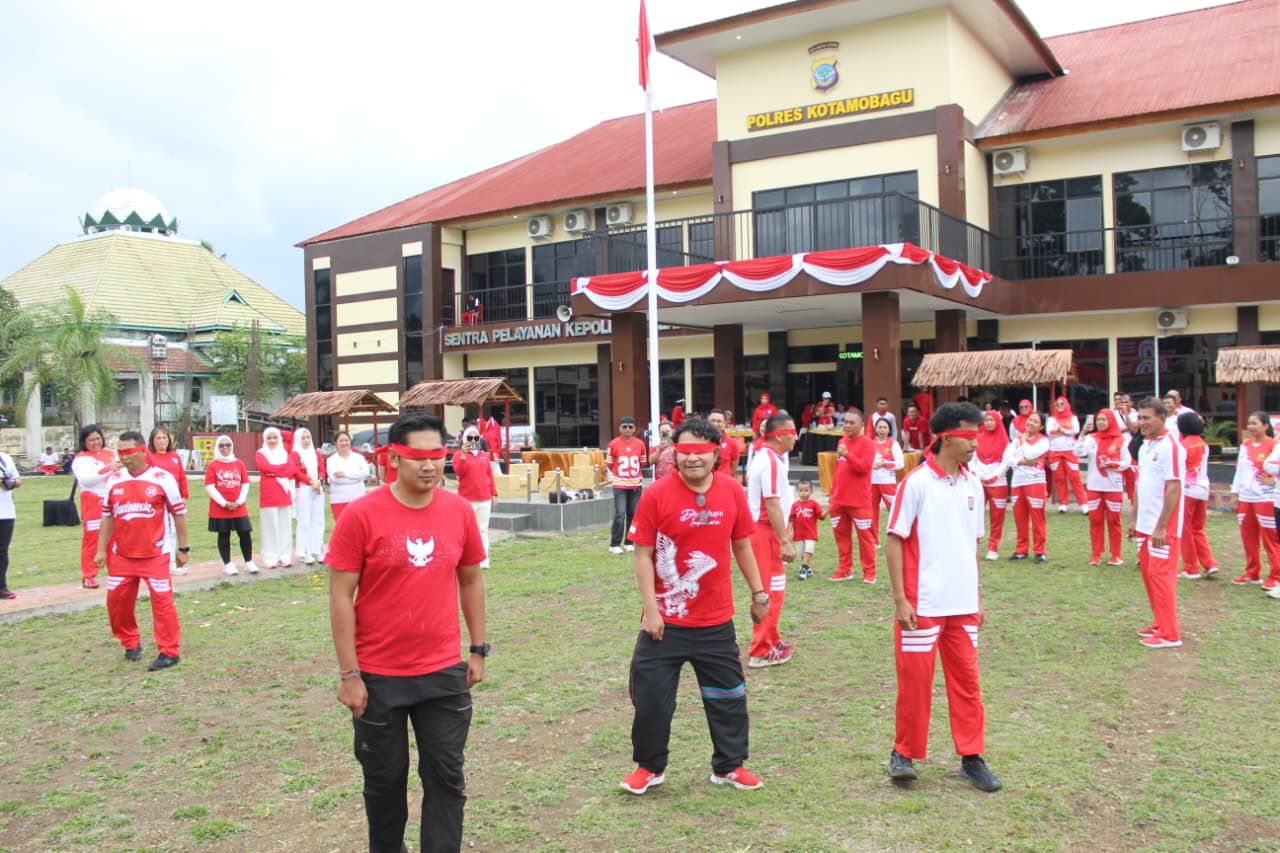 Kapolres Kotamobagu AKBP Irwanto, SIK,MH serta personil, ASN dan Bhayangkari di Polres Kotamobagu terlibat dalam lomba Tarik Tambang, makan kerupuk, tebak gaya, meletus balon, lomba PBB sambil ditutup mata, serta rebut kursi yang diikuti antusias peserta.