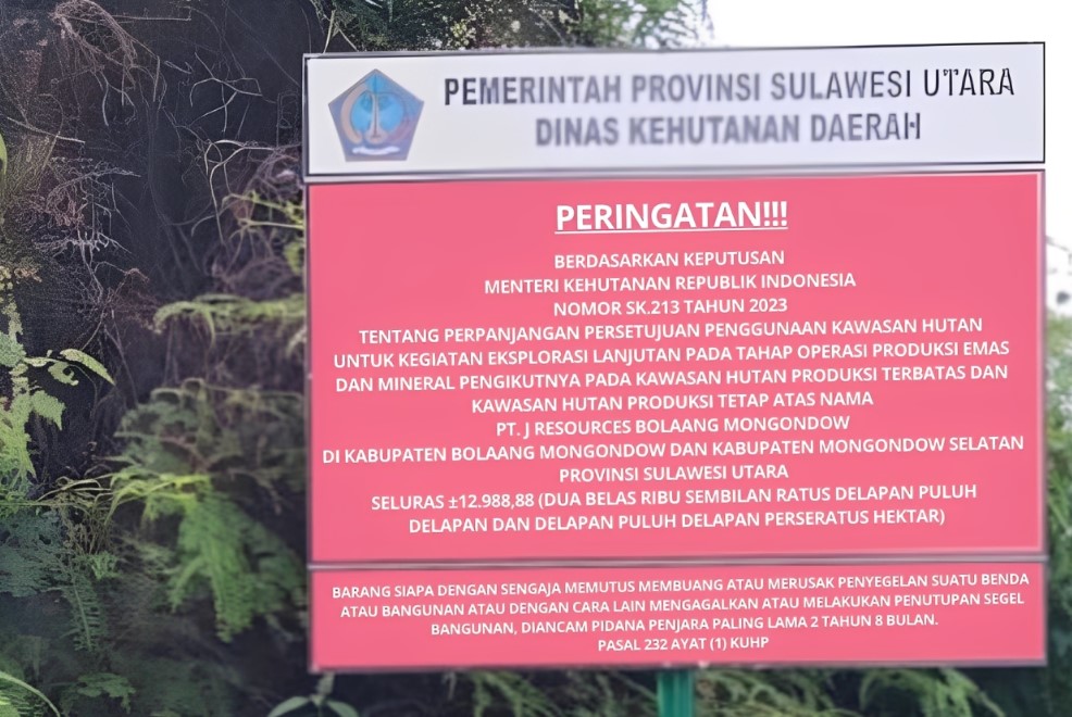 Papan Peringatan yang dipasang Dinas Kehutanan Daerah Provinsi Sulut