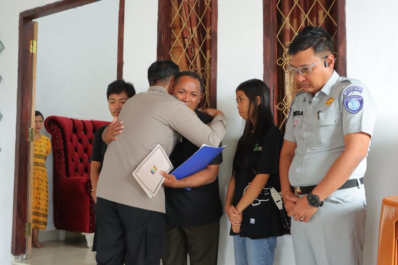 TNews, KOTAMOBAGU – Rumah duka Korban kecelakaan lalu lintas yang merupakan Istri Prajurit TNI yang bertugas di Kodim 1303 Bolmong didesa Moyag Tampoan Kecamatan Kotamobagu Timur mendapat kunjungan dari Kapolres Kotamobagu serta Dandim 1303 Bolmong dan Kepala Jasa Raharja Kotamobagu, Senin (17/11/2025).