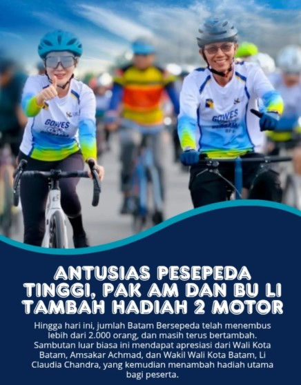 Wali Kota Batam, Amsakar Achmad, bersama Wakil Wali Kota, Li Claudia Chandra, menyambut antusiasme ini dengan menambah hadiah utama. Dua unit sepeda motor kini menjadi tambahan hadiah, selain sepeda senilai Rp50 juta dan beragam hadiah menarik lain seperti kulkas dan mesin cuci.