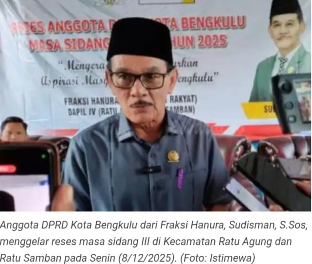 TNews, KOTA BENGKULU – DPRD Kota Bengkulu memastikan akan menindaklanjuti keluhan warga terkait bau menyengat yang diduga berasal dari limbah Hotel Mercure di Kelurahan Padang Jati. Anggota DPRD Kota Bengkulu dari Fraksi Hanura, Sudisman, S.Sos, menyatakan pihaknya telah melaporkan persoalan tersebut dan menjadwalkan inspeksi mendadak (sidak) ke lokasi pekan depan, bersamaan dengan pengecekan ke Mie Gacoan, yang juga menjadi sorotan terkait lingkungan dan perizinan.