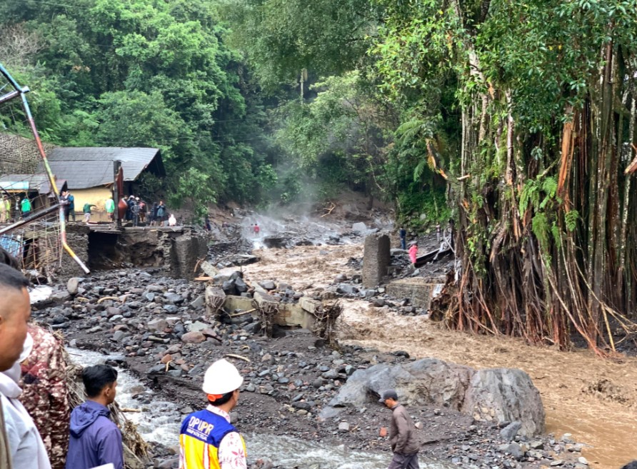 Sejumlah infrastruktur vital, termasuk jembatan penghubung utama ke pemandian air panas, rusak berat. Aktivitas wisata dan mobilitas warga pun terganggu. Plh. Bupati Tegal, Ahmad Kholid, bersama jajaran Forkopimda langsung meninjau lokasi terdampak.