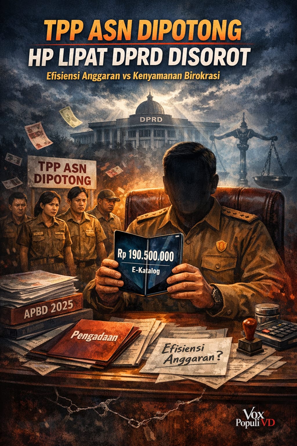 Vox Populi VD berpandangan: ketika efisiensi diketatkan, TPP ASN dipotong, tetapi belanja gawai premium tetap berjalan, maka yang patut dipertanyakan bukan hanya sistem, melainkan keberpihakan. Karena anggaran bukan sekadar angka—ia adalah cermin moral kekuasaan.*