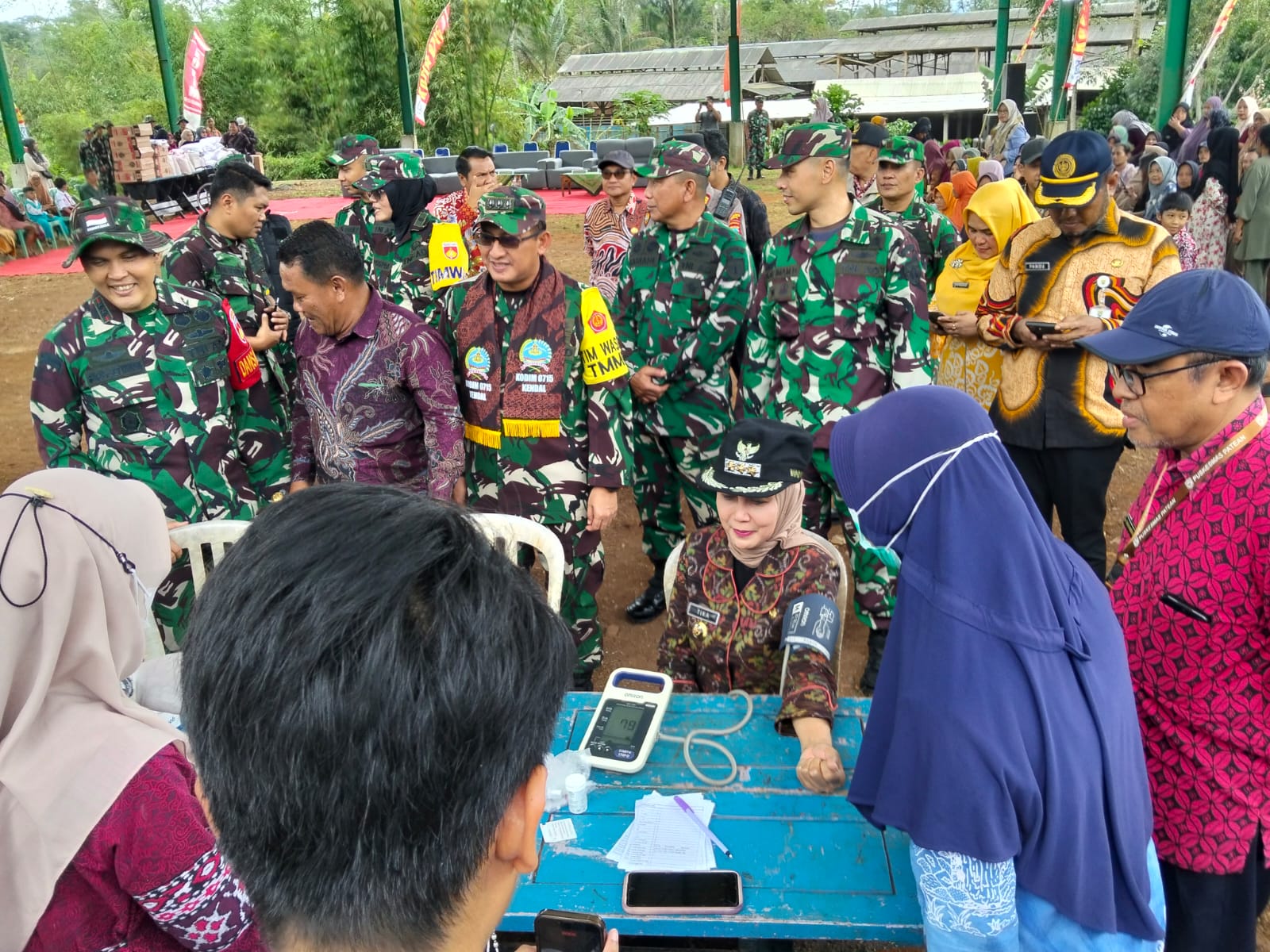 TNews, KENDAL – Bersamaan dengan pelaksanaan kunjungan tim pengawasan dan evaluasi (Wasev) dari Sterad, Satgas TMMD regular kodim Kendal di desa Gedong kecamatan Patean, berkolaborasi dengan puskesmas Patean Kembali menggelar pelayanan cek Kesehatan gratis di Lokasi TMMD, Kamis (25/02/26).