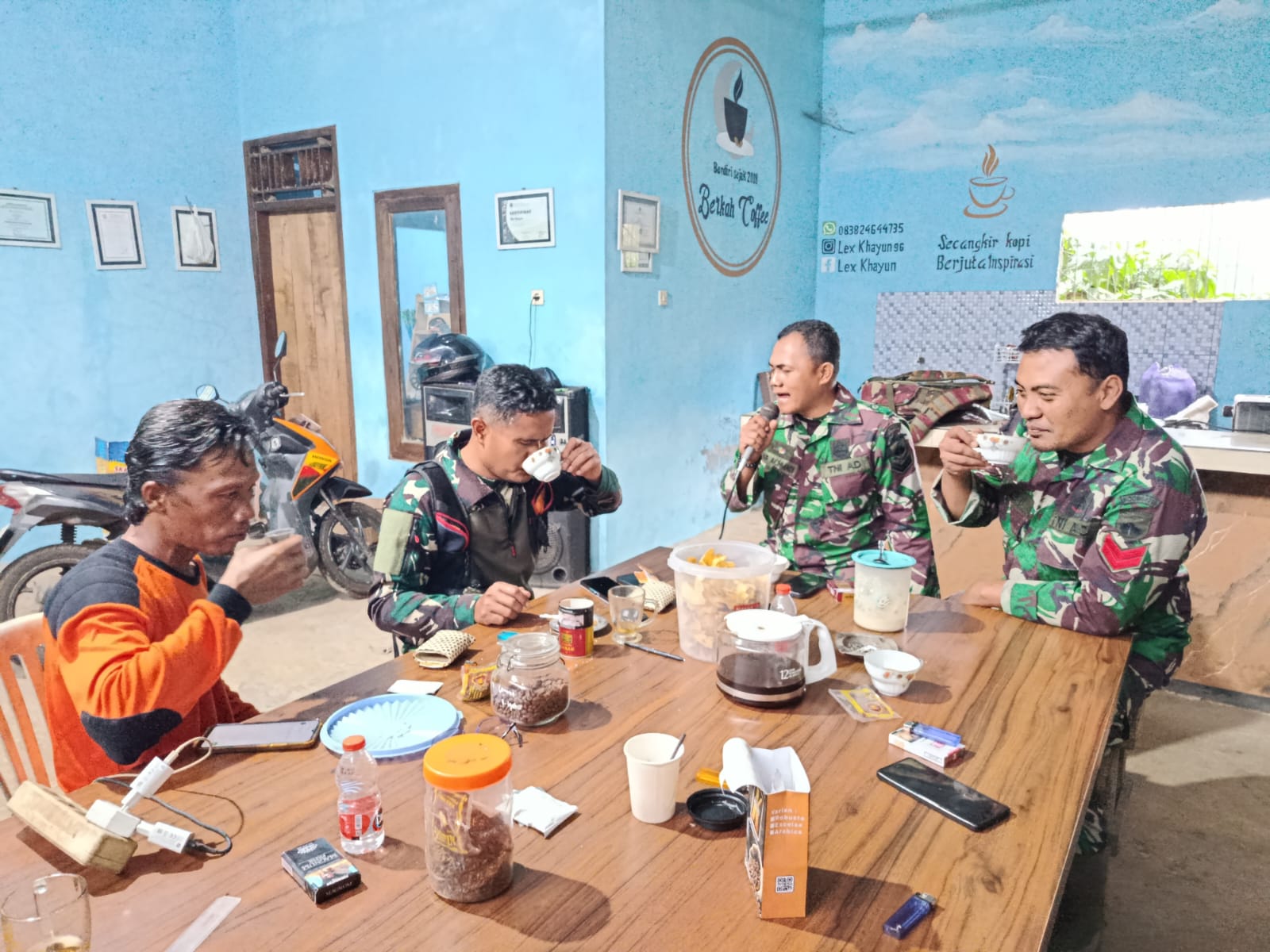 “Bagi warga dan anggota satgas, kopi minum di sini tidak usah beli, tapi yang kami jual adalah kopi bubuk, bisa di beli dan di bawa pulang, dan banyak anggota satgas yang membeli untuk di buat saat di tempat menginapnya selama di sini, bahwak ada yang pesan untuk nanti di bawa pulang setelah selesai TMMD”, imbuhnya.*