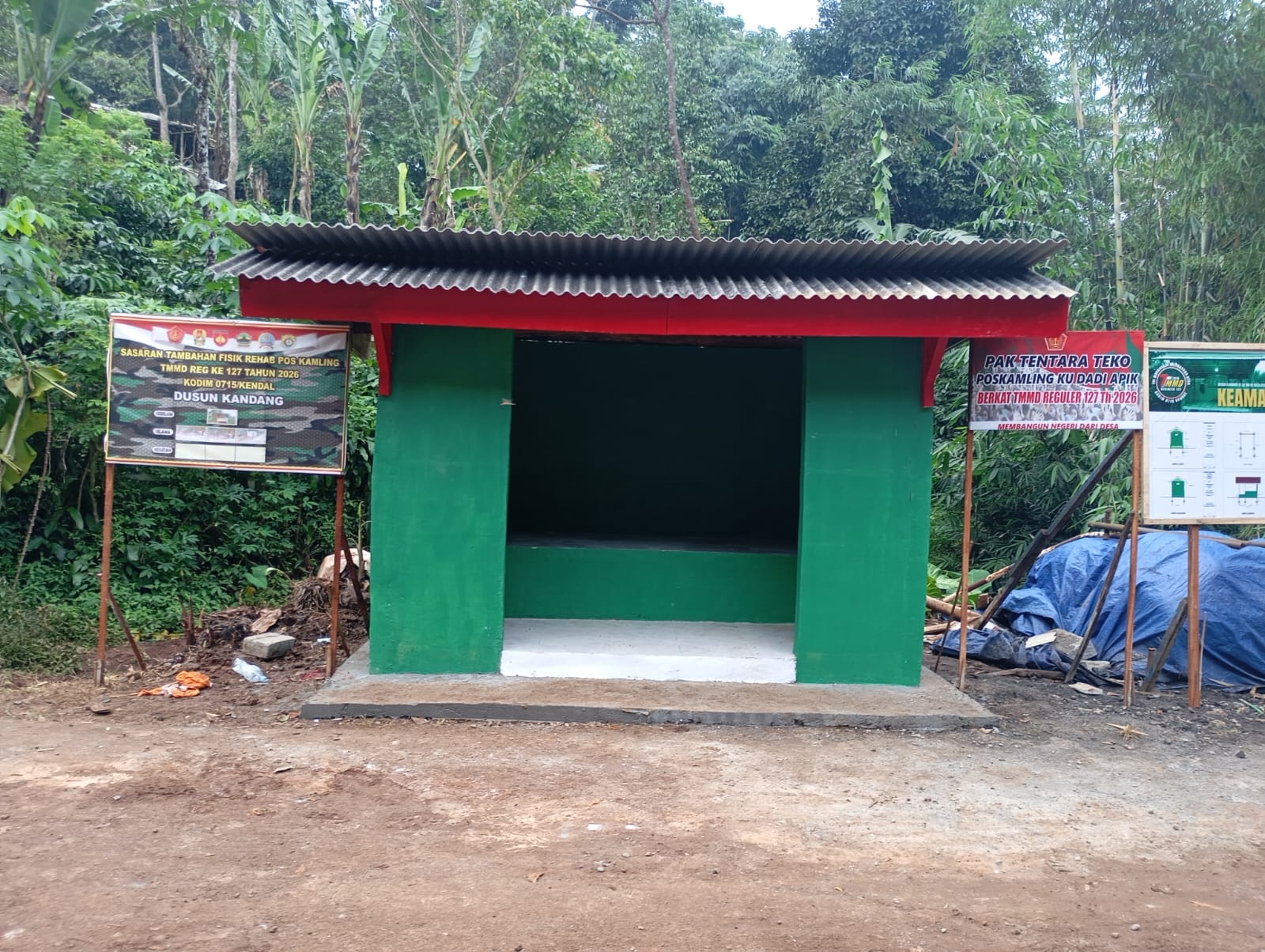Menurut Kadus Kandang, Suyono, pembangunan pos kamling tersebut terletak yang di Dusun Kandang sudah masuk tahap finishing.“Pos kamling sudah pada tahap Finishing, dan akan diresmikan bersama dengan sasaran fisik TMMD lainnya, ada jalan, talud, dan rehab RTLH,” tuturnya.