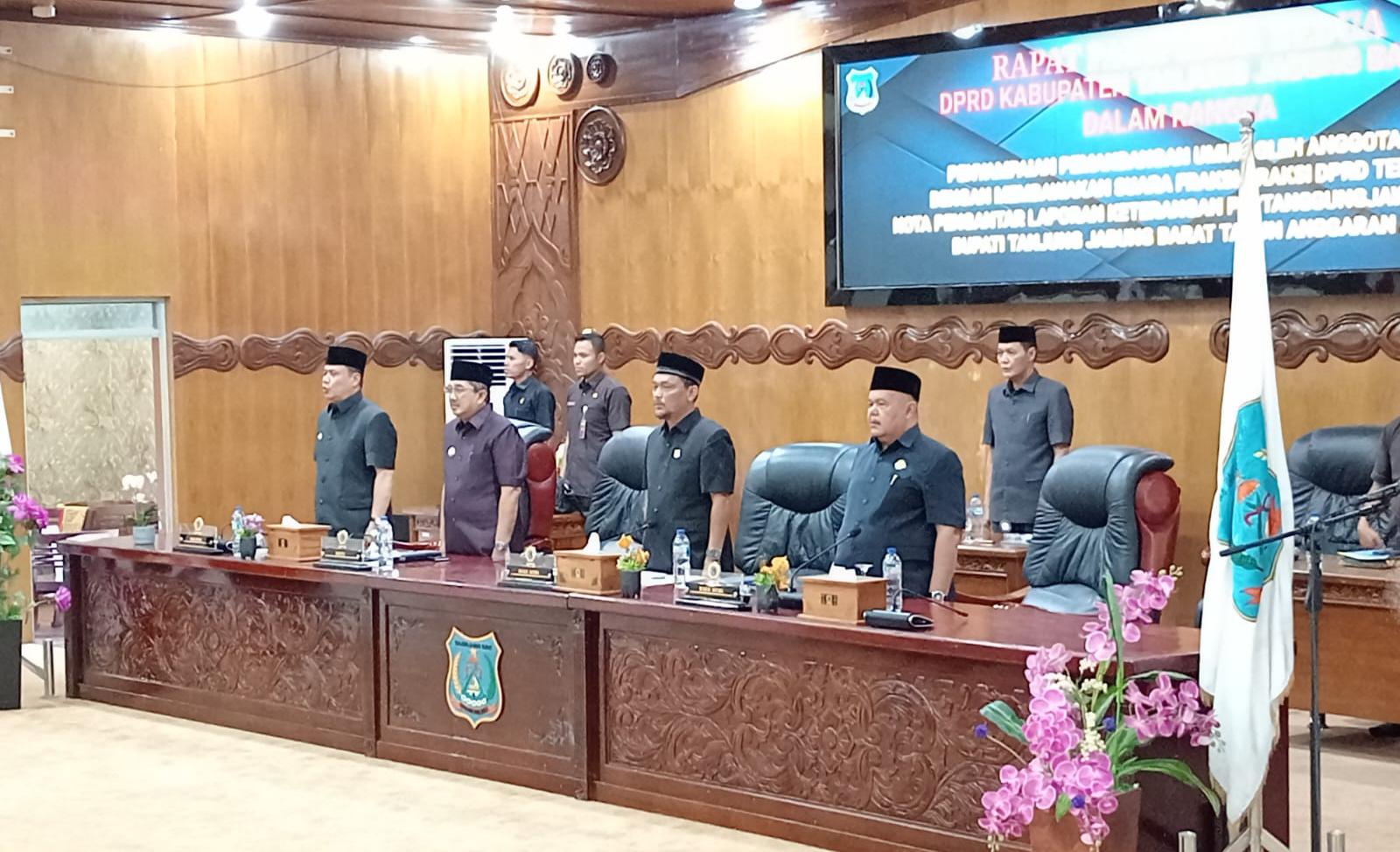 TNews, TANJAB BARAT –Pembahasan kinerja Pemerintah Kabupaten Tanjung Jabung Barat tahun anggaran 2025 mulai memasuki tahap krusial. Dalam Rapat Paripurna Kedua DPRD yang digelar Senin (6/4/2026), sejumlah fraksi menyampaikan pandangan umum mereka terhadap Laporan Keterangan Pertanggungjawaban (LKPJ) Bupati.