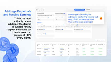 - Kemampuan untuk melakukan arbitrase antara pasar spot dan berjangka. Saat ini, klien layanan ini menghasilkan uang terbanyak dengan menggunakan alat Arbitrage Perpetuals – di mana Anda bisa melakukan arbitrase pada strategi Spot + Features, Features + Features, dan Features + Spot yang menguntungkan.