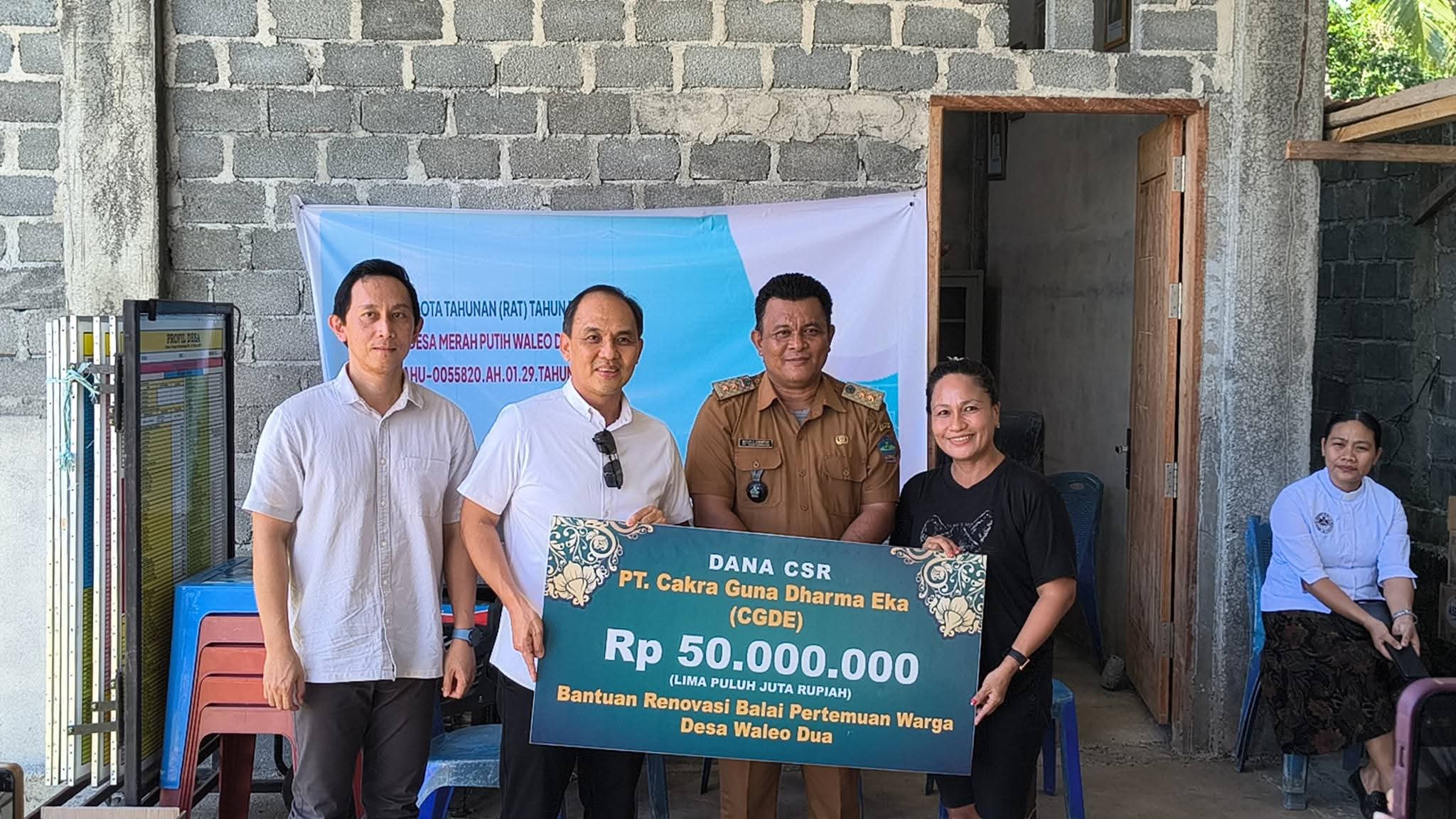 Bantuan berupa uang tunai sebesar Rp50.000.000,- diserahkan langsung oleh Presiden Direktur PT. Cakra Guna Darma Eka, Jemmy Asiku, dan diterima dengan penuh rasa syukur oleh Penjabat (Pj) Hukum Tua Desa Waleo Dua, Marthin Hengky Sumampouw.