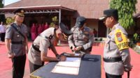 TNews, KOTAMOBAGU – Polres Kotamobagu menggelar upacara serah terima jabatan yang berlangsung di Lapangan Apel Mapolres Kotamobagu. Dalam upacara tersebut, Wakapolres lama