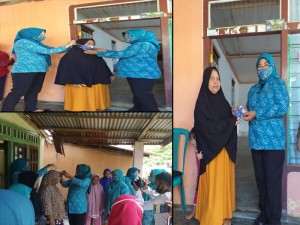TNews, BOLMUT — Tim Penggerak Pemberdayaan Kesejahteraan Keluarga (TP PKK) Kabupaten Bolaang Mongondow Utara (Bolmut), bersama TP PKK Kecamatan Pinogaluman, membagikan ratusan